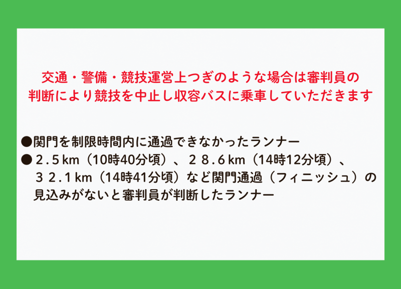 関門通過(フィニッシュ)が難しいと審判員が判断したランナー