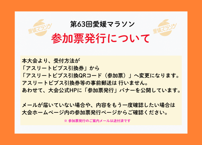 🍊第63回愛媛マラソンにエントリーいただいたランナーのみなさまへ🍊