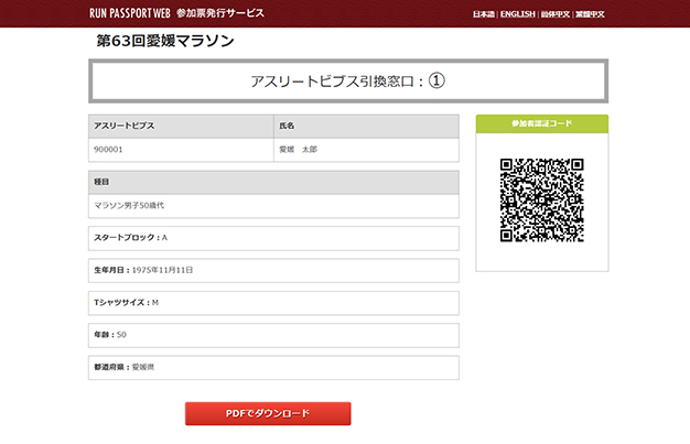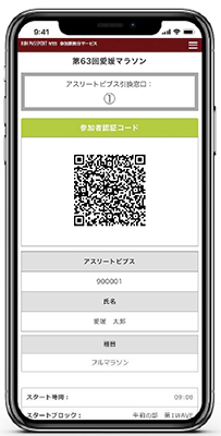 受付でアスリートビブス引換QRコード(参加票)を掲示してください。